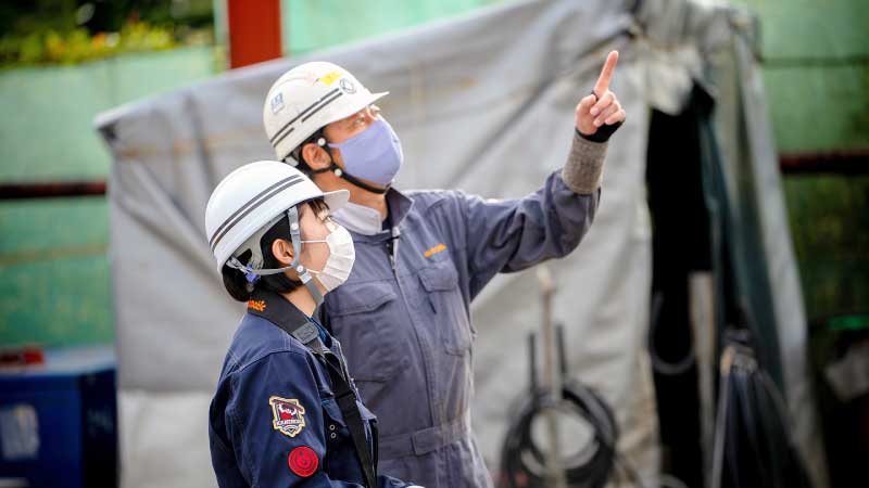 リラックスしながら学べるアットホームな環境。つなぎ・ヘルメット・安全靴も無料でお貸しいたします。