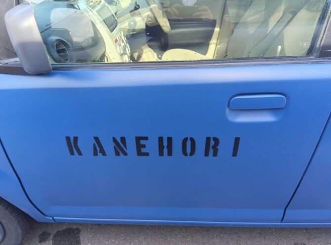 板金塗装前の写真が無かったので、ビフォアーアフターを比較してお見せすることができず残念なのですが、このサービスカー、以前はホワイトでドアの下部が錆びついて茶色くなっていました。