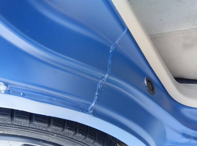 ドアの下の錆びていた部分はカットして直したものを溶接してあります。(左側)