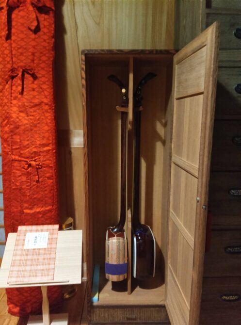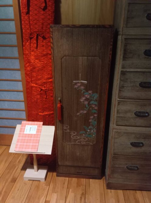 鏡台にかけてある手ぬぐいは糸菊の柄。